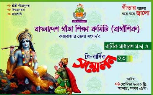 সংবাদ বিজ্ঞপ্তি :: বাংলাদেশ গীতা শিক্ষা কমিটি (বাগীশিক) কক্সবাজার জেলা সংসদের বার্ষিক সাধারণ সভা ও ত্রি-বার্ষিক সম্মেলন অনুষ্ঠিত হবে ১লা সেপ্টেম্বর শুক্রবার।