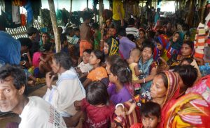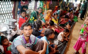 ছবি : ২০১৭ সালের ২৫ আগস্ট উখিয়ার কুতুপালংয়ে পোল্ট্রি ফার্মে আশ্রয় নেয়া হিন্দু শরনার্থীরা।